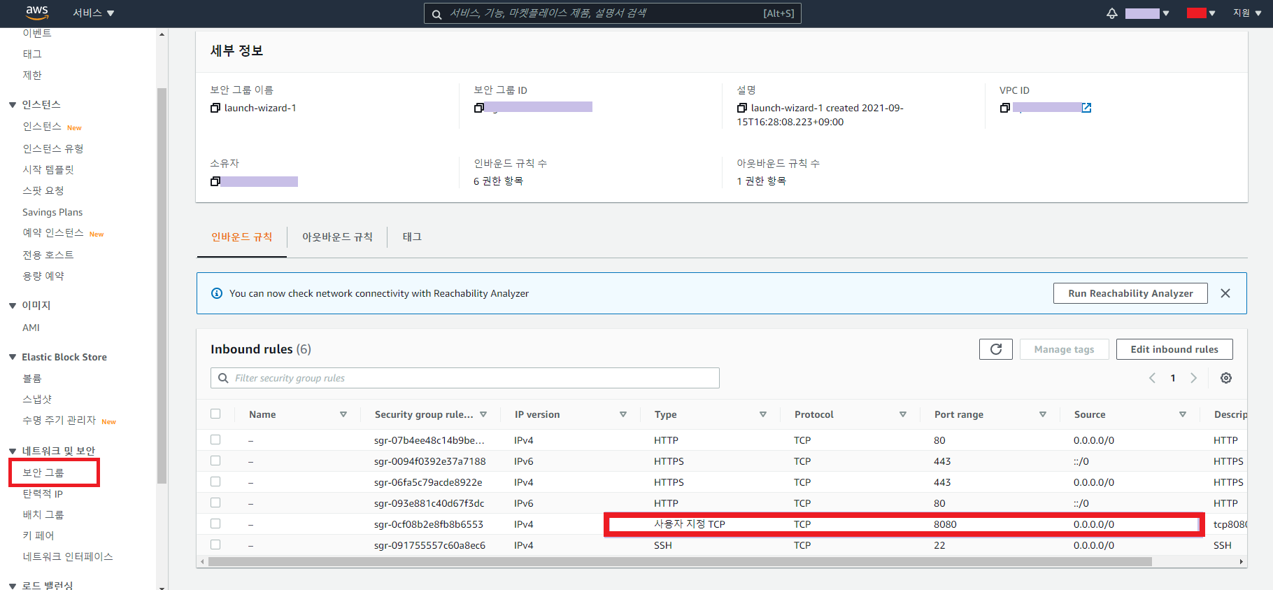 AWS EC2 보안그룹 인바운드규칙 그리고 탄력적 IP 체크