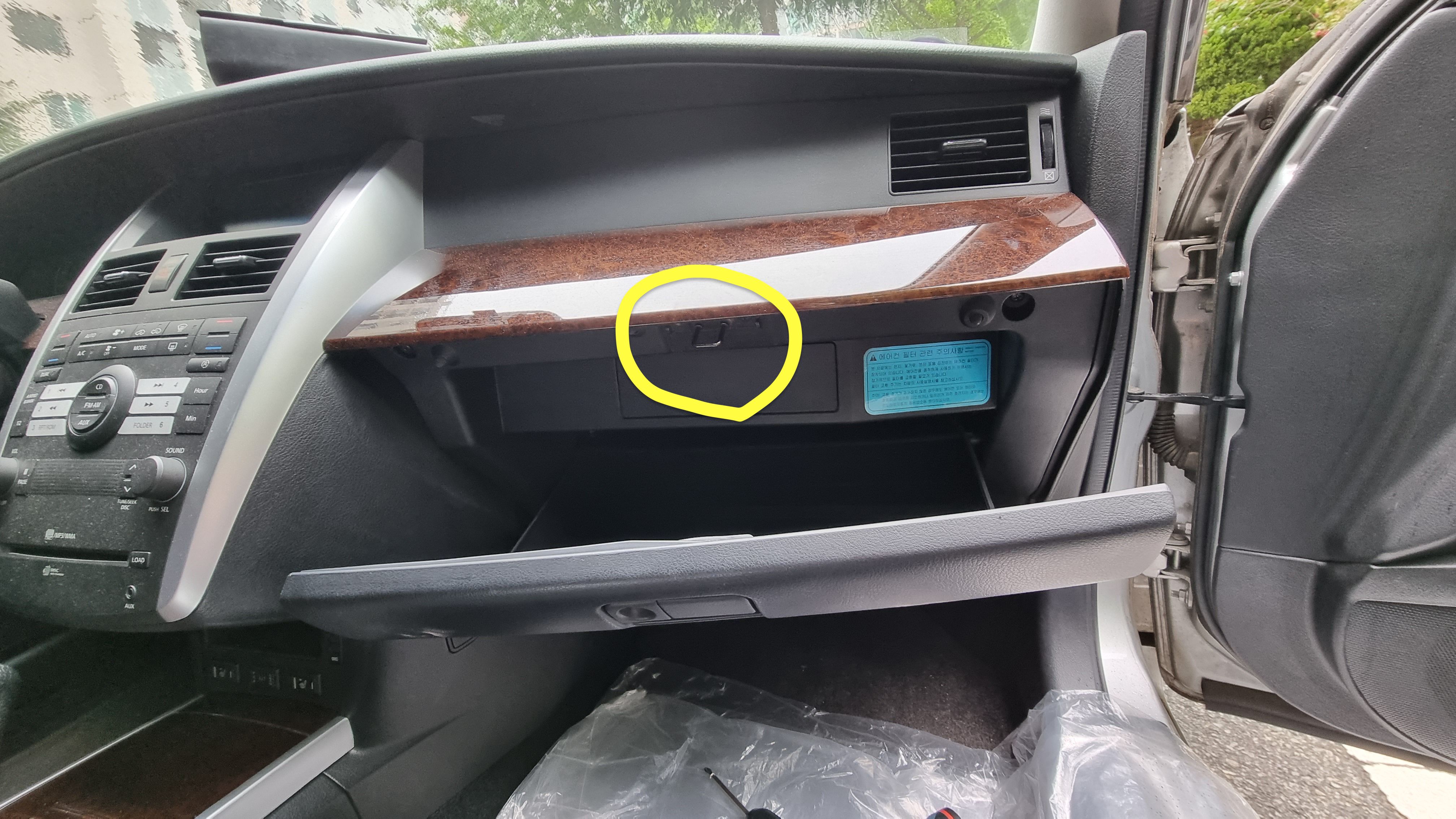 조수석 바닥쪽은 비닐을 깔아 오염을 방지 했습니다.