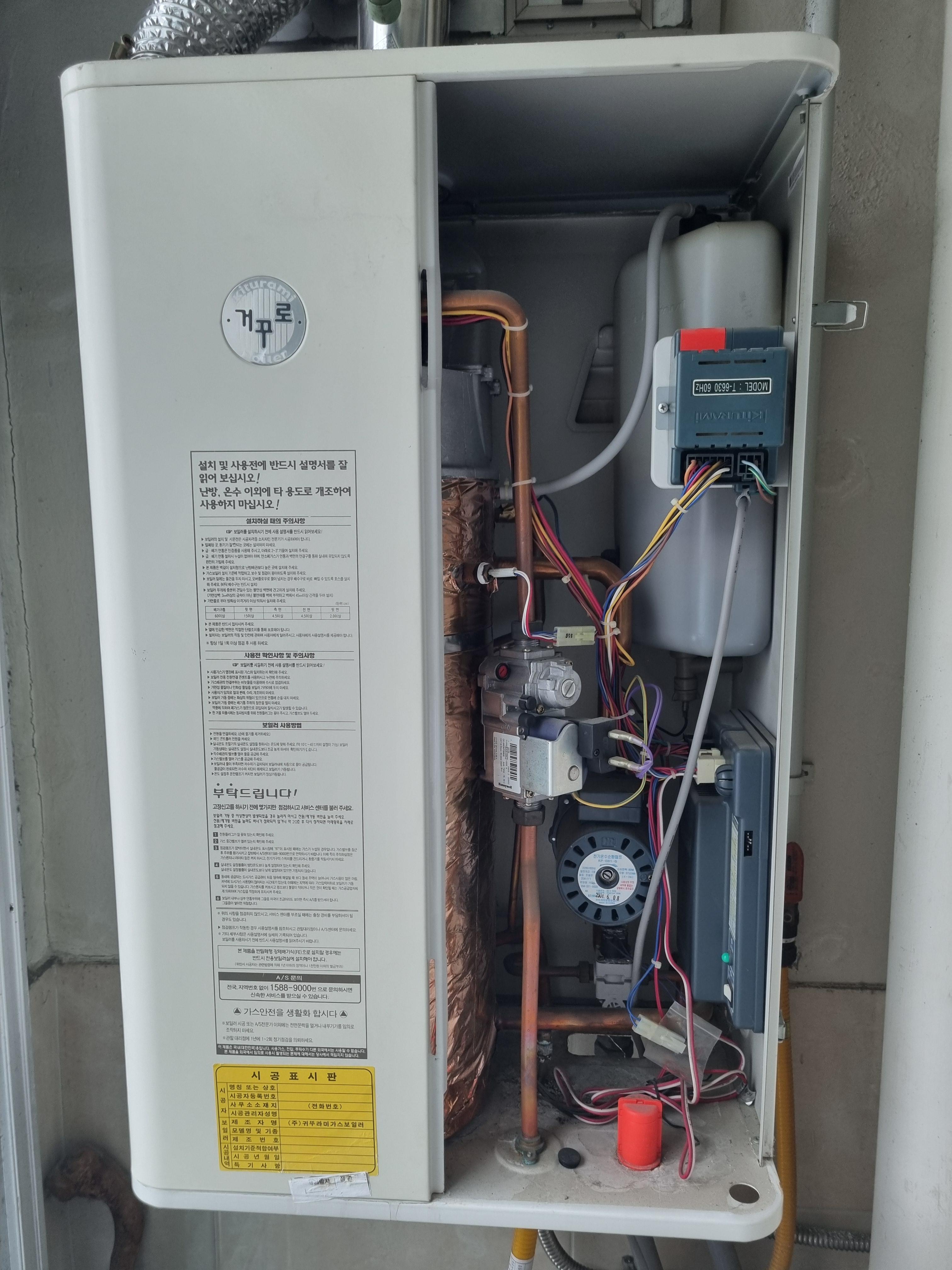 보일러본체 뚜껑을 열고